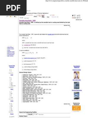 Sensible Heat Ratio Shr Pdf Heat Hvac