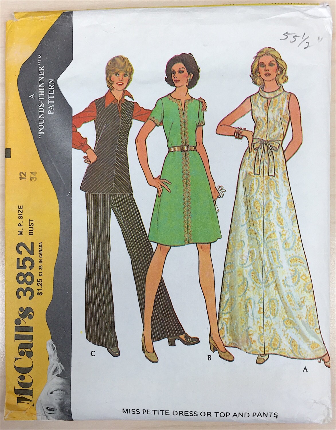 Miss 12 Bust 34 Long Dress Top Pants Pattern 1970s Etsy